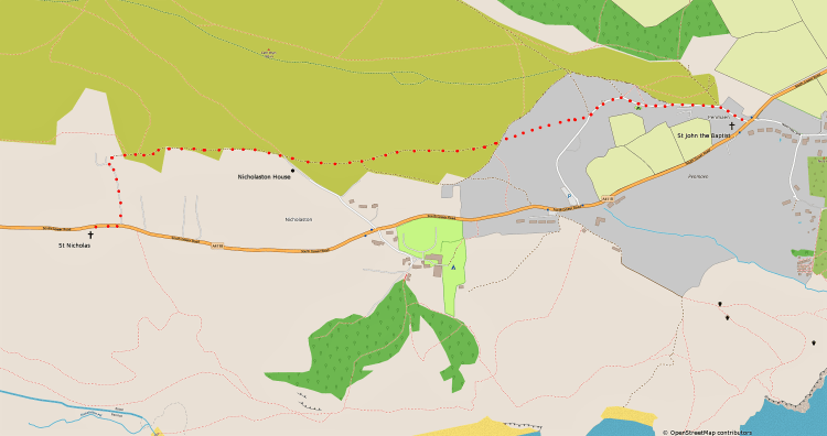 - Gan adael mynwent eglwys Nicholaston, croeswch y ffordd yn ofalus, troi i’r dde a dilyn y ffordd am o ddeutu 50 llath at gilfan ar y chwith.