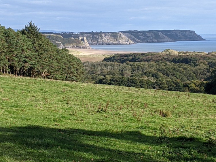 Os ydych chi am osgoi’r tir gwlyb neu’r da byw, ffordd arall yw dilyn y ffordd i fyny drwy bentref Oxwich tan i chi gyrraedd cyffordd-T. Trowch i’r dde a dilyn y ffordd i’r gyffordd nesaf. Trowch i’r dde ar y troad nesaf, sy’n arwain at Eglwys Pen-rhys. Byddwch yn ofalus wrth gerdded ar hyd y ffordd.