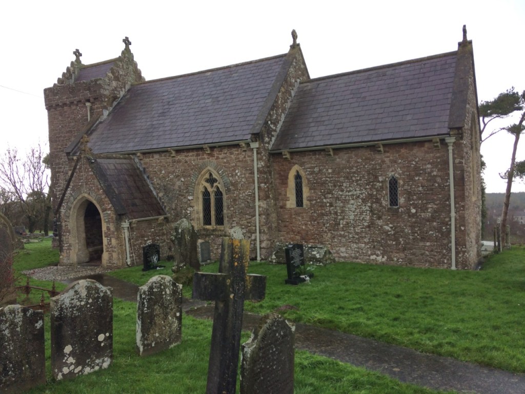 St Madoc is reputed to have founded a church here in the 6th century, and the present building is 13th century. Set in one windowsill is a lettered stone dating from the 6th century which was discovered in 1861 in the walls of the old parsonage house, and commemorates ‘Advenctus son of Guanus’. In the west wall is a crude pillar cross and a boundary marker dating from the 7th to 9th centuries, whilst the font is probably Norman. During the 12th century the parish was controlled by the Knights Templar, before passing to the Knights Hospitaller of St John of Jerusalem, though no visible evidence now remains of this. The Revd J D Davies, a skilled woodcarver, was Rector here from 1860 to 1911. He carved the oak altar frontal and led the major restoration begun in 1865.
