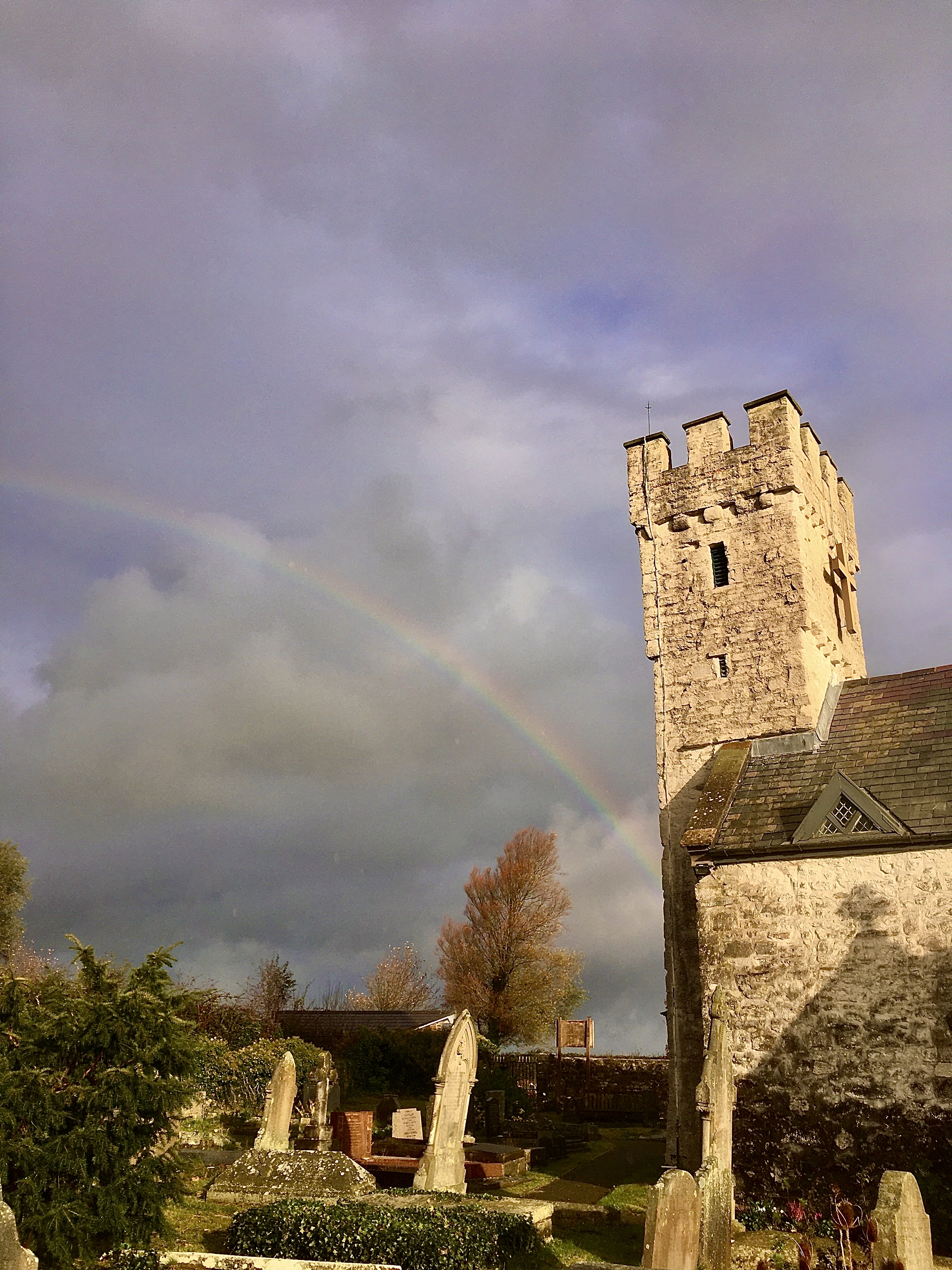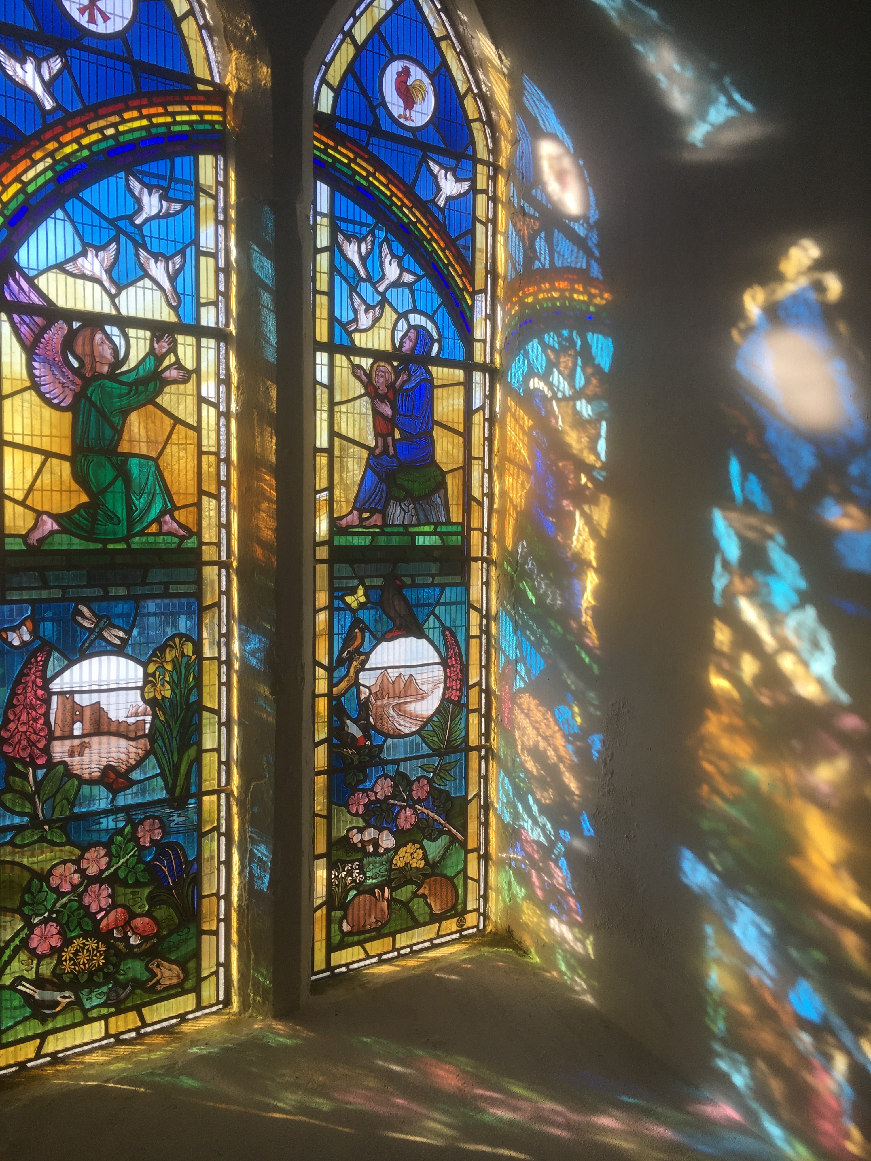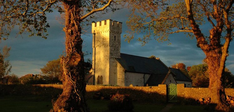 A church which stood close to Pennard castle and whose remains can still be seen was besanded and finally abandoned in the early 16th century, so that St Mary’s became the parish church. However, the existing church has 13th century features such as an external window with dog-tooth mouldings, so which church pre-dates the other is not certain. An ancient water stoup serves as a font, with a carved Jacobean cover, and the pulpit is also Jacobean. Laudian dog-rails protect the sanctuary and the beam supporting the gallery may have been the medieval rood-beam. A beautiful stained glass window, the work of local artists, was installed to mark the new millennium. A tablet is dedicated to Vernon Watkins and another 20th century poet, Harri Webb, is buried in the churchyard.